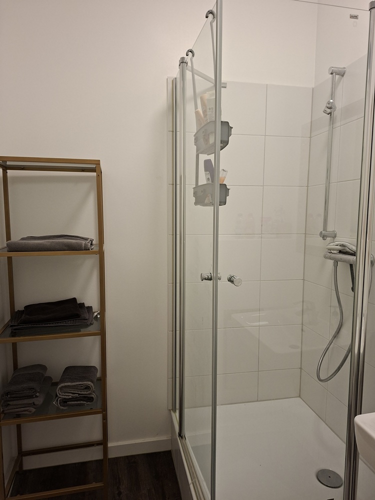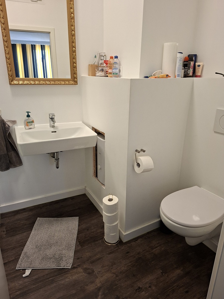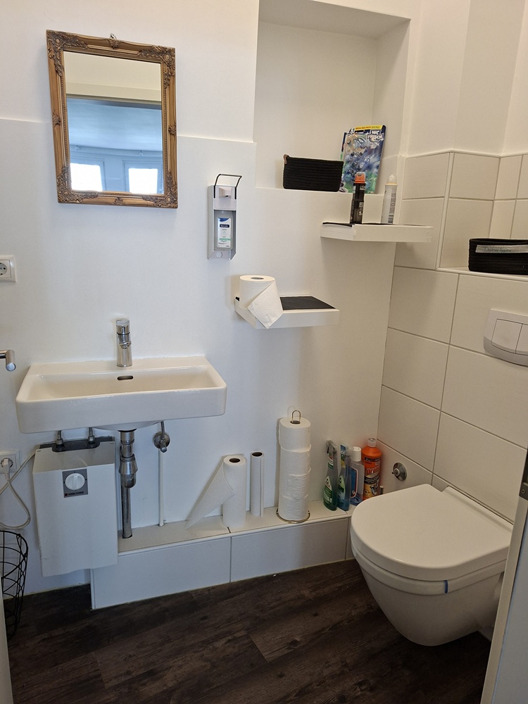 Im 1. Obergeschoss befindet sich ein helles, modernes WC. Des Weiteren verfügt das 2. Obergeschoss über eine helles, modernes Duschbad.