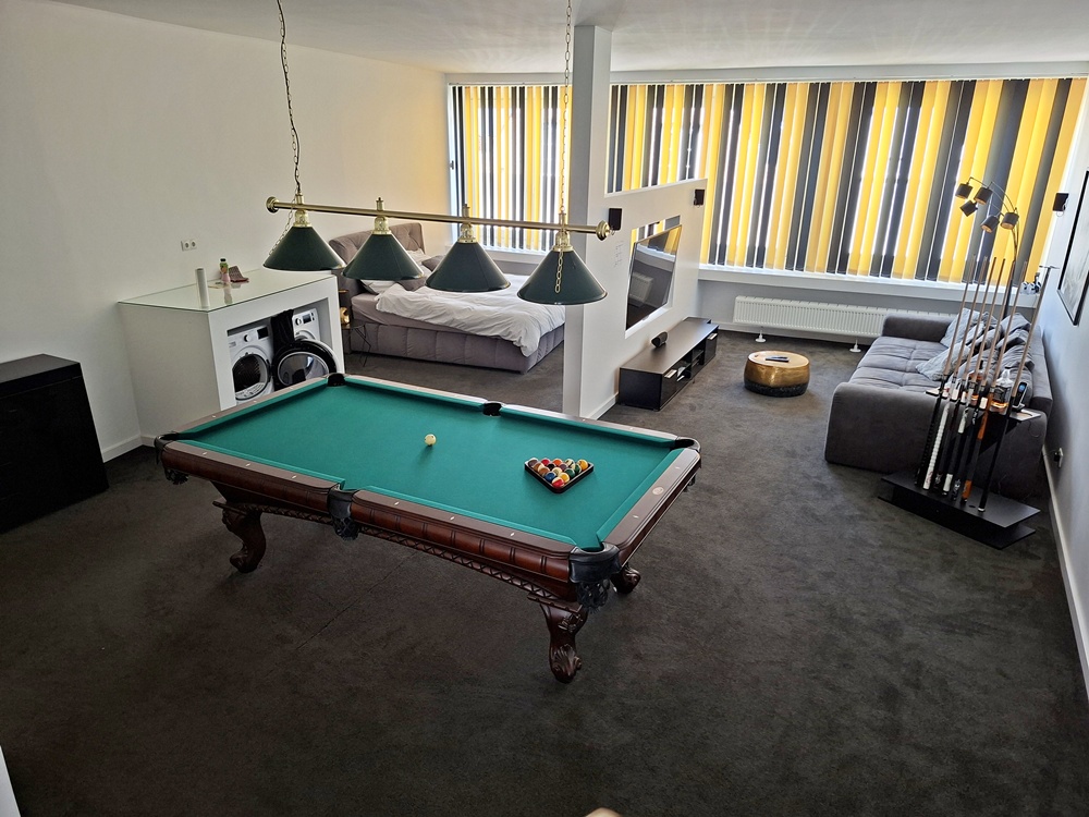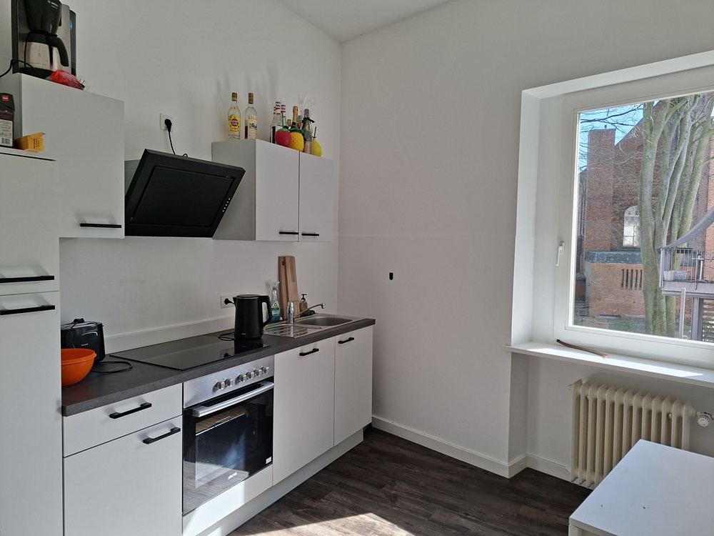 Einer der Aufenthaltsräume ist mit einer modernen Einbauzeile ausgestattet.