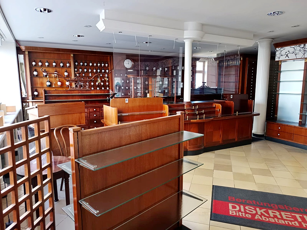 Das sich in der ehemaligen Apotheke befindliche Mobiliar und die Ausstattung stehen im Eigentum der Mieterin und gehören nicht mit zum Verkaufsumfang.
