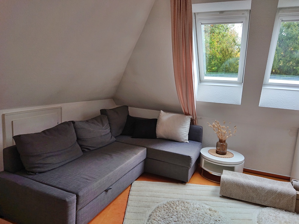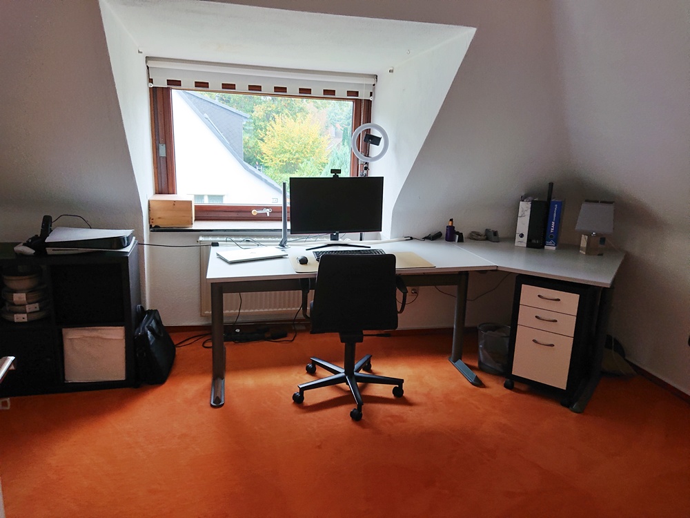 Über eine offene Holztreppe erreichen Sie das Dachgeschoss. Hier befinden sich neben einem Arbeitszimmer und einem Vollbad weiterhin ein Gästezimmer mit angrenzendem Abstellraum, der auch als begehbarer Kleiderschrank genutzt werden kann.