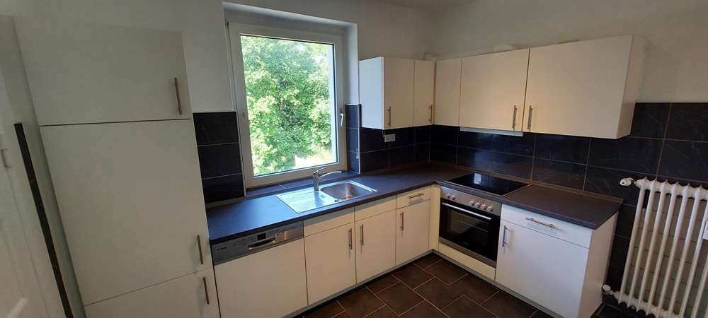 Die Wohnung im 1. Obergeschoss besteht aus 3 Zimmern nebst Flur, Küche mit angrenzendem Abstellraum und Vollbad mit Dusche. Die Wohnung ist mit einer Einbauküche aus dem Jahr 2017 ausgestattet. Das Bad wurde ca. im Jahr 2019 modernisiert und ist ebenfalls mit einer Duschtasse, einer Badewanne, einem Doppelwaschbecken und einem Handtuchheizkörper ausgestattet. In den Wohnräumen befinden sich Dielen, im Flurbereich Vinyl. Ein Balkon ist nicht vorhanden. Die Wohnung verfügt über eine Wohnfläche von 89,76 m².