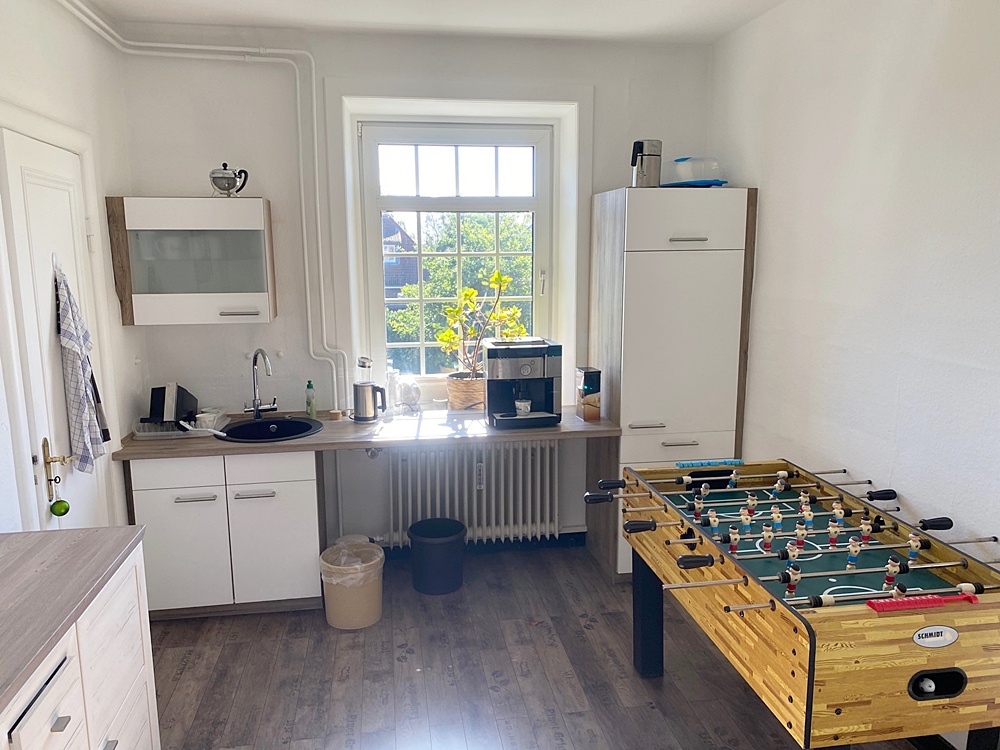 Im Erd- und Obergeschoss ist jeweils eine Einbauküche vorhanden, die als Sozialraum genutzt werden.