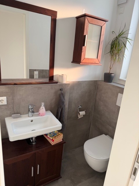 Im Erdgeschoss finden Sie das helle Wohn-/Esszimmer, die hochwertig ausgestattete Einbauküche, das Gäste-WC, den Hauswirtschaftsraum sowie zwei kleine Abstellräume. Der offene Wohn- und Essbereich sowie die Küche bieten viel Platz für gemütliches Beisammensein und gemeinsame Mahlzeiten. Die Terrasse lädt dazu ein, die warmen Tage im Freien zu genießen.