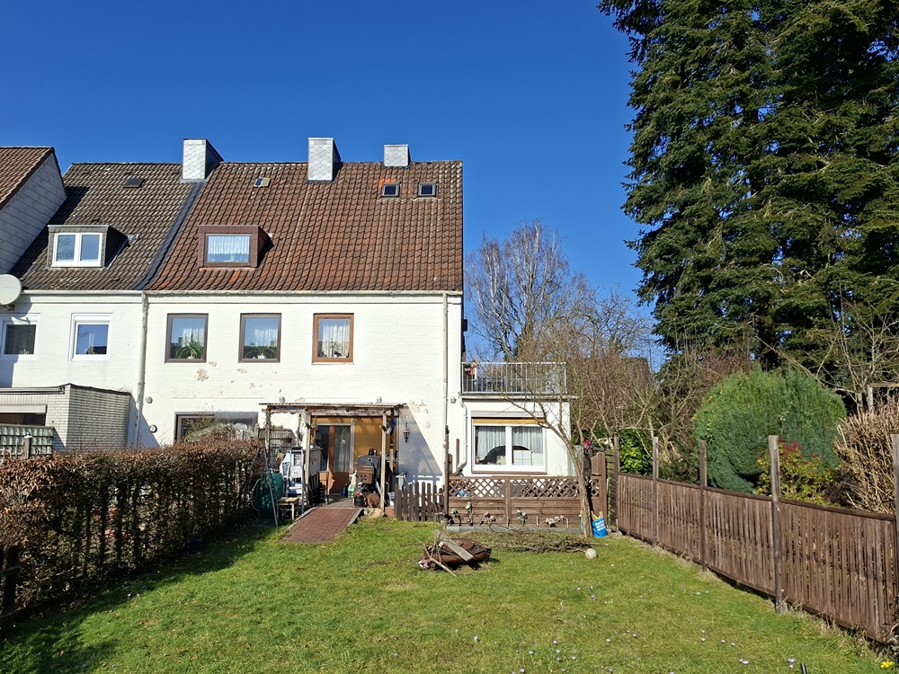 Das zum Verkauf stehende Endreihenhaus befindet sich als Endstück eines Häuserblocks im Stadtteil Tegelhörn, in ruhiger Lage gelegen inmitten einer weiträumigen Gartenlandschaft am Ende einer Stichstraße. Die Immobilie wurde 1954 zweigeschossig mit ausgebautem Dachgeschoss und vollunterkellert in massiver Bauweise errichtet und ca. 1959 um einen ebenfalls unterkellerten Anbau nach Osten hin seitlich erweitert. Damit ist im Erdgeschoss ein großzügiger Wohnraum mit zwei Südfenstern entstanden, darüber eine Dachterrasse.