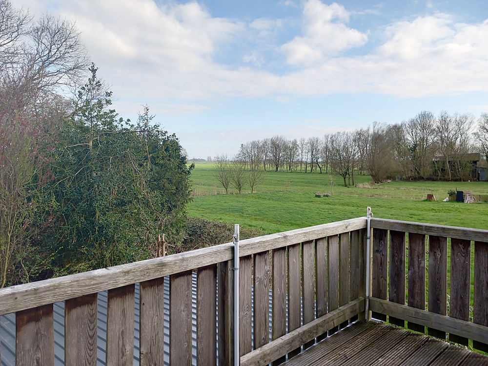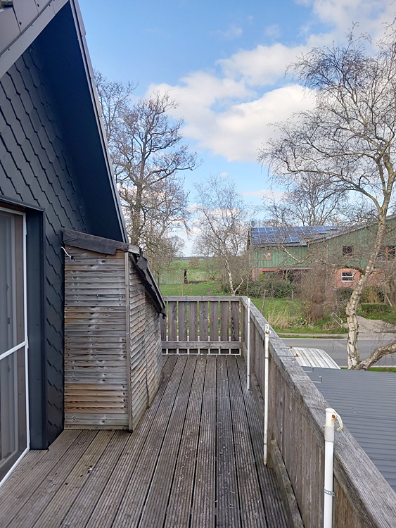 Über eine hübsche Holztreppe gelangen Sie in das Obergeschoss, das über zwei weitere Schlafzimmer sowie ein Wannenbad/WC verfügt. Von einem der Schlafzimmer aus betritt man den großzügigen Balkon mit einem herrlich weiten Blick über die Wilster Marsch bis hin zum Nord-Ostsee-Kanal.