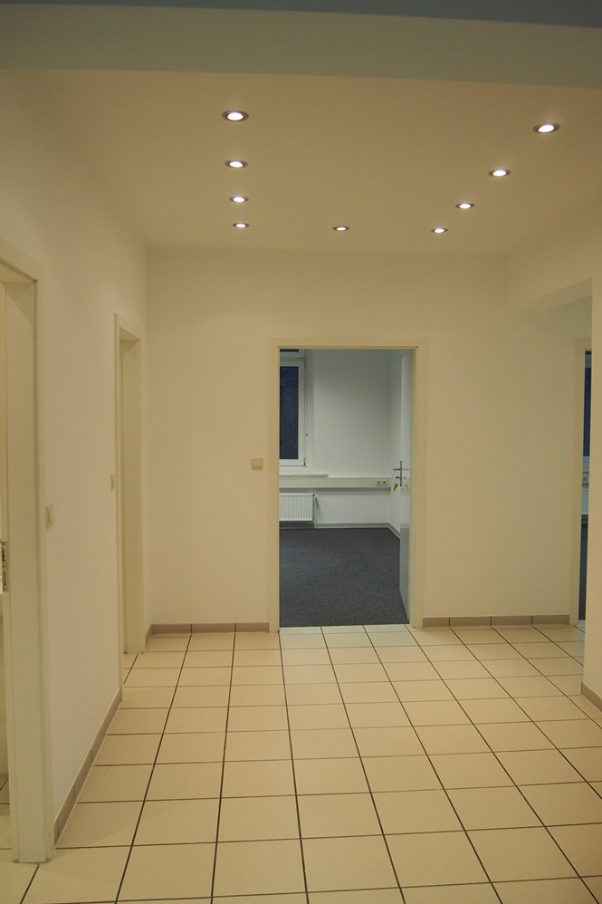 Insgesamt sind 4 Büros, eine Küche, zwei WCs sowie ein kleiner Abstellraum vorhanden. Der innenliegende Flur wurde zuletzt als Empfangs-/Wartebereich genutzt.